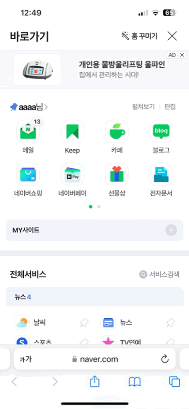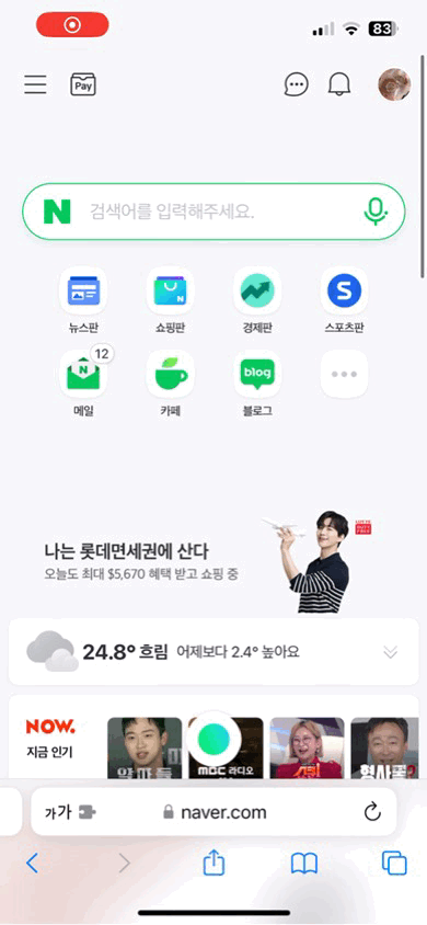 사파리에서는 제스처를 사용한 탭 간 전환이 가능합니다. 어플이 아닌 웹을 사용하는 이유는 다른 서비스로의 이동이 원활하기 때문입니다. 이 작업이 한 손을 통한 제스처로 가능해지니 훨씬 더 편하죠.